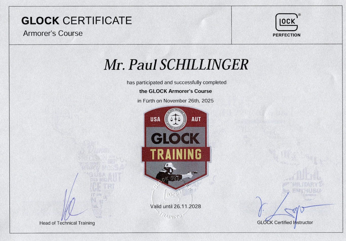 Im Rahmen einer aktuellen Fortbildung von Glock haben wir unser Fachwissen gezielt erweitert und vertieft.